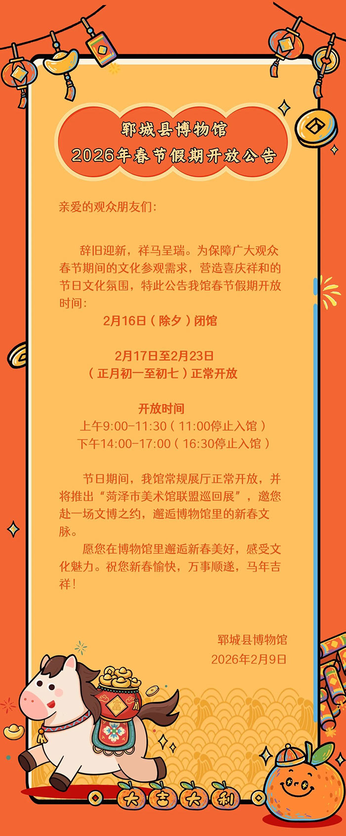 郓城县博物馆2026年春节假期开放公告