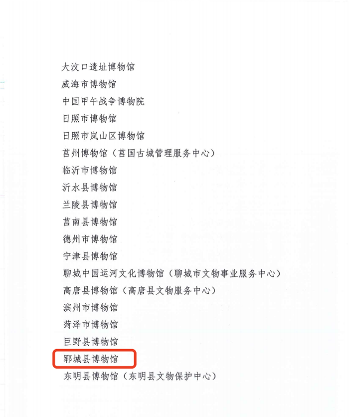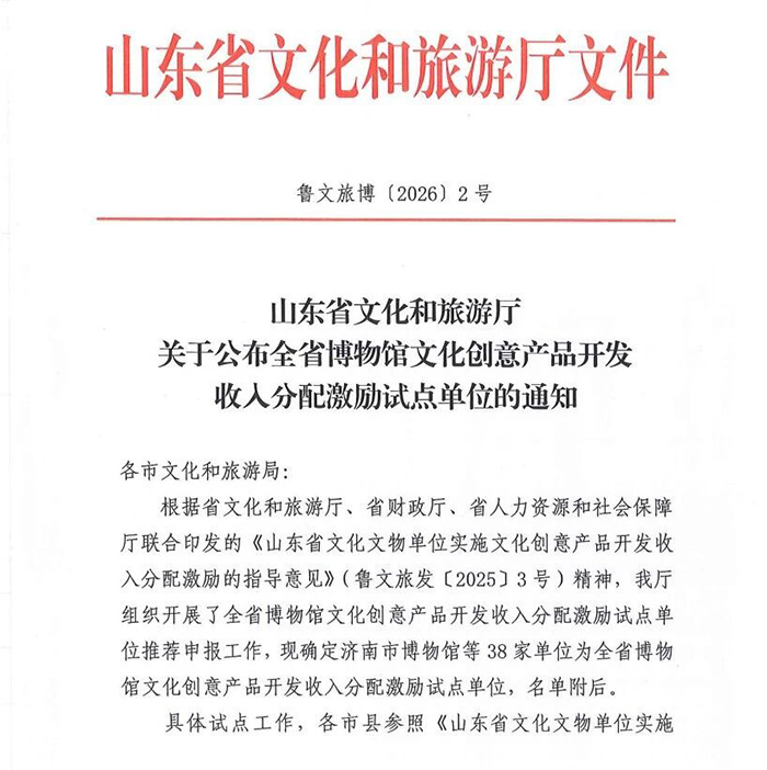 日前,省文化和旅游厅公布了 38 家单位为全省博物馆文化创意产品开发收入分配激励试点单位,郓城县博物馆入选。
