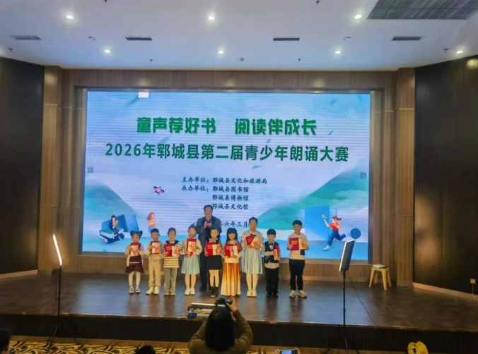 书香润童心,童声传美好。为迎接第 31 个世界读书日,落实《全民阅读促进条例》推广阶梯阅读、培育少儿阅读兴趣的要求,由郓城县文化和旅游局主办、郓城县图书馆、郓城县博物馆、郓城县文化馆承办的 “童声荐好书 阅读伴成长” 郓城县第二届朗诵大赛在县博物馆一楼报告厅顺利举办。3-16 岁的少年儿童齐聚赛场,以童声为翼,以书籍为媒,分享阅读感悟,传递文字力量,为春日的郓城增添了浓浓书香。